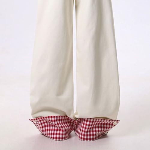 HOT ! LAFOURAM Petite Jeans for Women 5 FT Short Wide Leg Baggy Trending Coquette Plaid Patchwork Denim Pants
