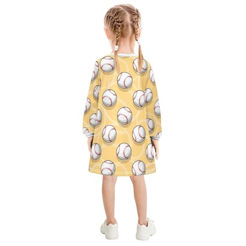 Baseball Girls Dresses Long Sleeve Sweatshirt Dress for Girls Winter Toddler Casual A Line Dresses Size 2-8T 4