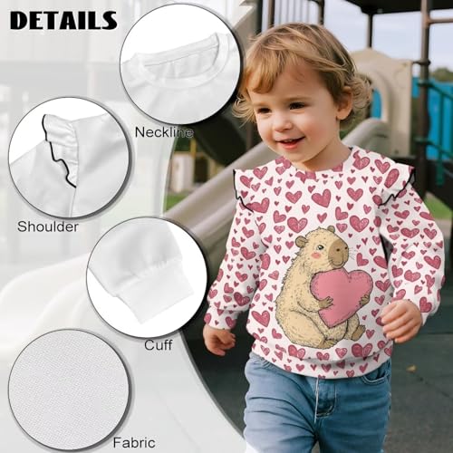 • Chic Ruffle Design: Delicate ruffle accents on the shoulders add a touch of sweetness to the classic crewneck silhouette. long sleeve pullover sweatshirts for toddler girls features ribbed cuffs and hem for a secure fit, paired with relaxed loose-cut styling that allows layering over tees or under jackets