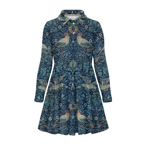 HOT ! Floral Print Long Sleeve Polo Dress for Girls Flowy A Line Midi Swing Pleated Dresses for School,Playing,Holiday