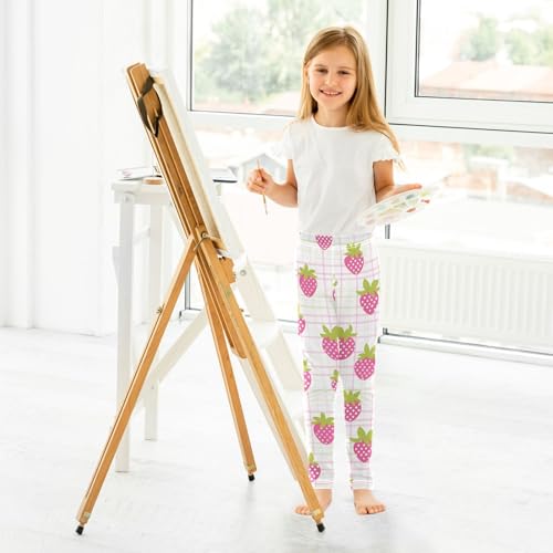 Pink Gingham Strawberries Girls Leggings Soft Stretch Workout Yoga Dance Pants for Kids Casual Tights 4