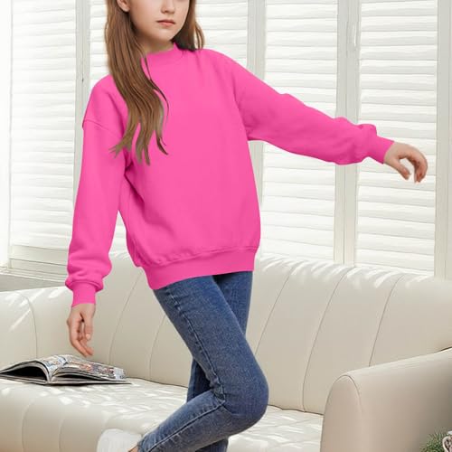 Unisex Kids Crewneck Pullover Tops Long Sleeve Sweatshirt Solid Color Shirts Trendy Casual Clothes Fall Sweatshirts 6