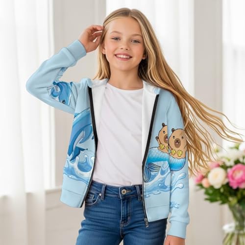 Girls Hooded Sweatshirts Kids Girl's Oversized Full Zip Hoodie Fashion Print Long Sleeve Hoodies with Pockets 6