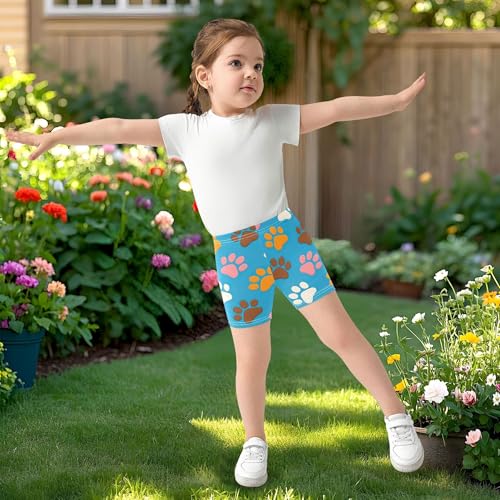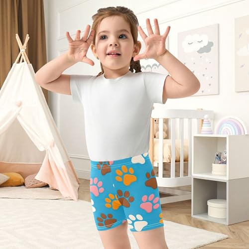 Multi Colored Paw Prints Brown Toddler Girl Biker Shorts 4t Shorts for Under Skirts Cotton Kids Clothes 3