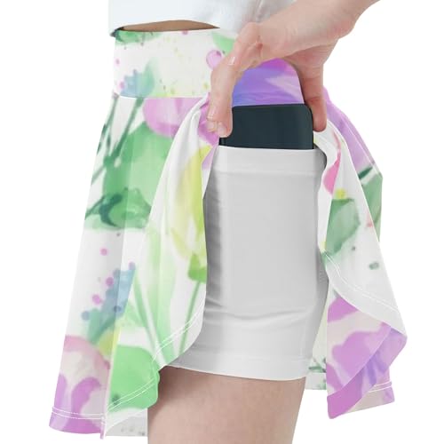 Skirts with Shorts Watercolor Wildflowers Pastel Athletic Shorts Girls Skorts Running Teen Cheer 4t 6