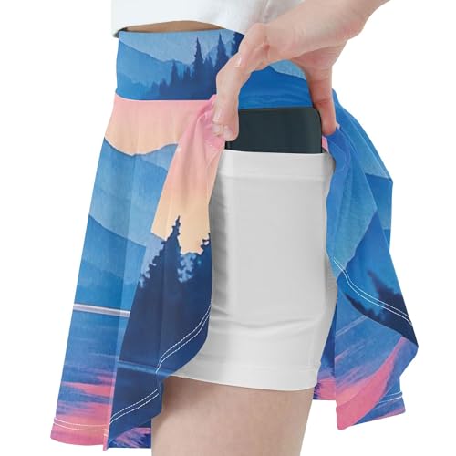Dance Girls Skorts Athletic Shorts Toddlers Tennis Skirts Pleated Watercolor Landscape Blue Mountains 4t 5