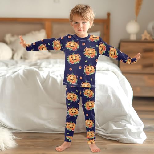Pajama Sets Long Sleeve Pumpkin Floral Halloween Pattern Soft Comfy Sleepwear 2 Piece PJS 3-8T 2