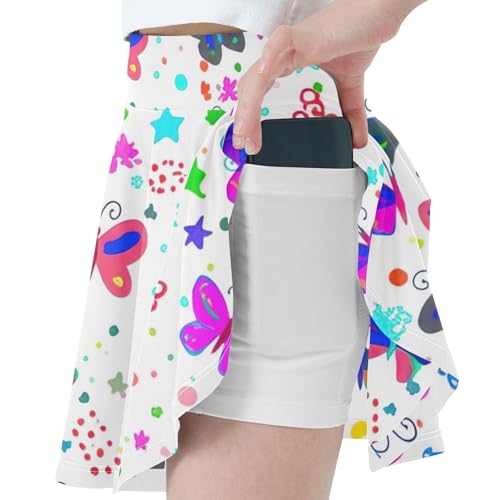 Butterflies Stars Dots White Athletic Shorts Girls Skorts Tennis Skirts Kids Running Teen Cheer 3t 4
