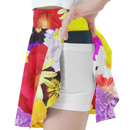 Joisal Breathable Athletic Shorts for Girls Skorts Tennis Skirts Toddler Flowy Skirt Vibrant Colorful Display Flowers 4t 7