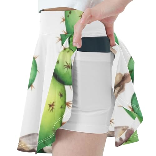 Joisal Watercolor Green Cactus White Athletic Shorts Girls Skorts Tennis Skirts Toddler Personalized Girl Skort 3t 7