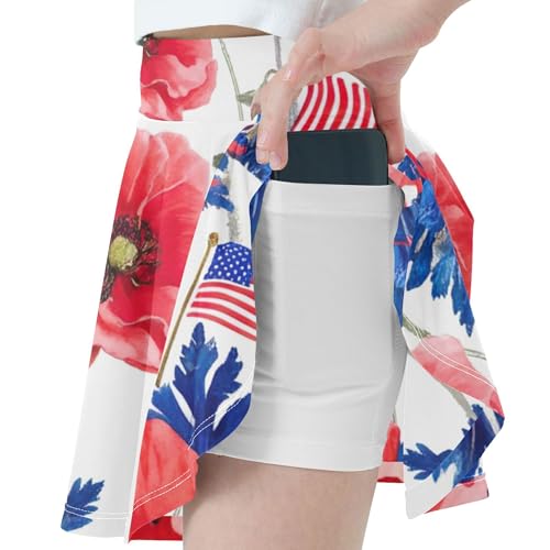 Red Poppies Blue Leaves Toddlers Tennis Skirts Running Girls Skorts Athletic Shorts Pleated 4t 3