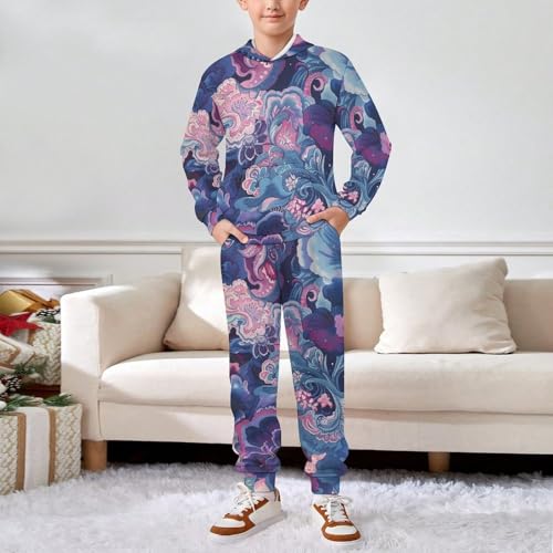 Traditional Purple Pink PaisleyChildren's Sweater Suit, Suitable for Spring, Autumn And Winter, Daily Matching 1