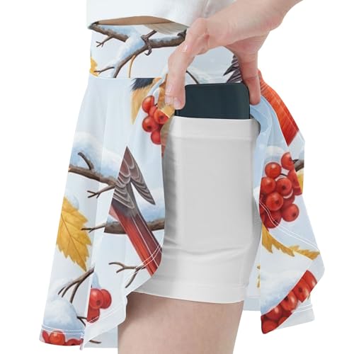 Athletic Shorts for Girls Skorts Xmas Bird Cardinal Snow Berries Kids Tennis Skirts Cute Comfy Teen Cheer 3t 4