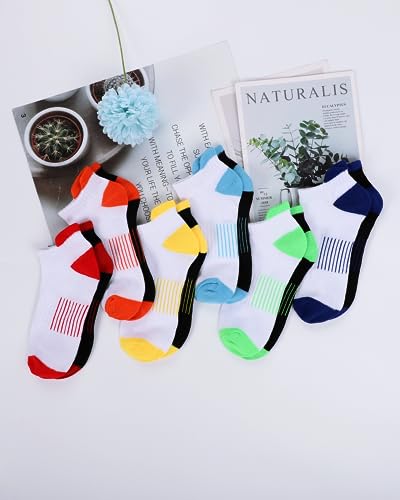 HASMES 12 Pairs Boys Girls Athletic Ankle Socks Kids 6-8 8-10 10-12 Years Old Cotton Half Cushion Low Cut Socks 5