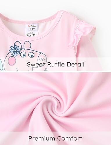 • Unique Design: This dress features Peppa Pig and other characters, surrounded by flowers and clouds. The sleeves have ruffles, and the overall style is lively and cute, perfect for toddler girls
