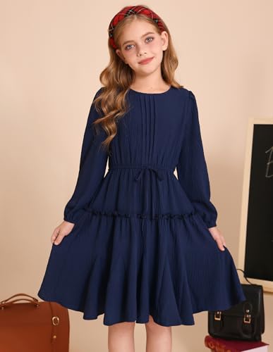 • Versatile Seasonal Wear: Perfect for fall and winter wardrobes for girls aged 6-14, this long sleeve crew neck dress transitions seamlessly between seasons - layer with leggings and a cardigan for colder days or wear on its own during milder weather, offering greater versatility than single-season options