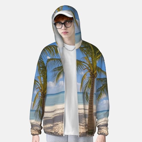• Full Zipper Closure: Beach Palm Tree Sun Shirt Outdoor lightweight full zip hoodie jacket, with long sleeve and a hood to protect you from ultraviolet rays and long-term skin damage.that complements both casual and athletic wear.