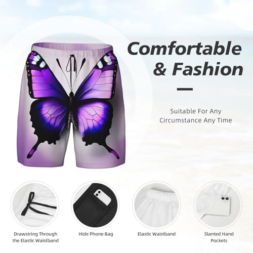 HOT ! Purple Butterfly Print Print Men Stylish Functionality Swim Trunks Breathable Beach Shorts Surfing Gym Fishing