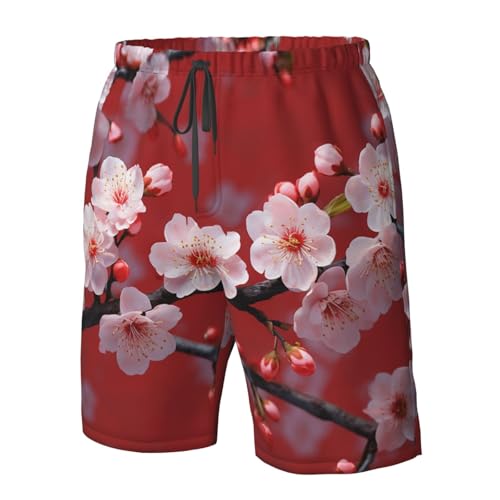 HOT ! Men's Swim Trunks Quick Dry Bathing Suits Peach Plum Blossom Beach Board Shorts Swimwear with Pockets