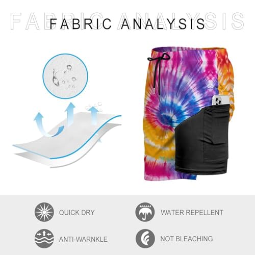 Tie Dye Colorful Rainbow Mens Swim Trunks with Quick-Drying Lining Beach Shorts for Outdoor Sports 5