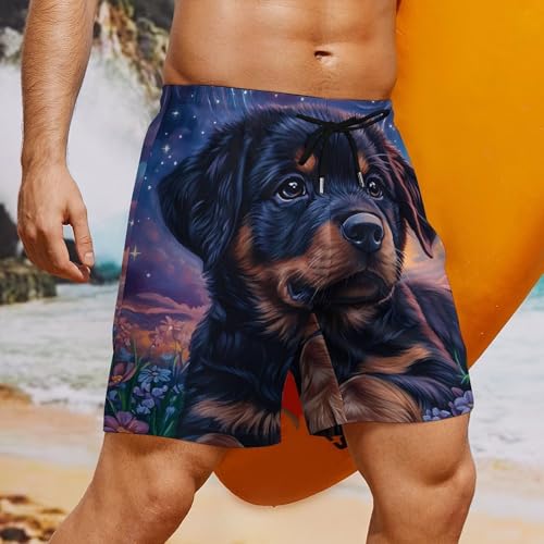 HOT ! Rottweiler Flowers Mens Swim Trunks with Quick-Drying Lining Beach Shorts for Outdoor Sports