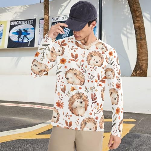 Bolaz Mens UV Protection Shirts Rash Guard Long Sleeve UPF 50+ Hedgehog Leaves Flower Quick Dry S 3