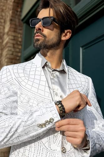 HOT ! Barabas Men's Geometric Studded Henley Lapel Blazer 3BLR14
