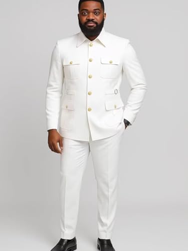 • 【2 Pieces Mens Suit】The mens suit package:Blazer+ Pant.Designed with 6 buttons single breasted blazer,and 4 chinese traditional square pockets.classic suit pants flat front and adjustable waist give you mored fit.