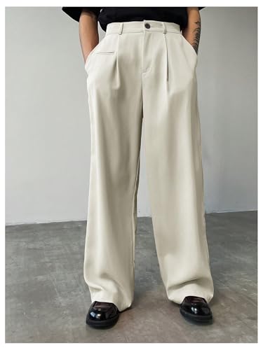• Features: suit pants for men, button, zipper fly closure, plain, solid color, low waist, loose, wide leg pants, casual long pants with pockets for men