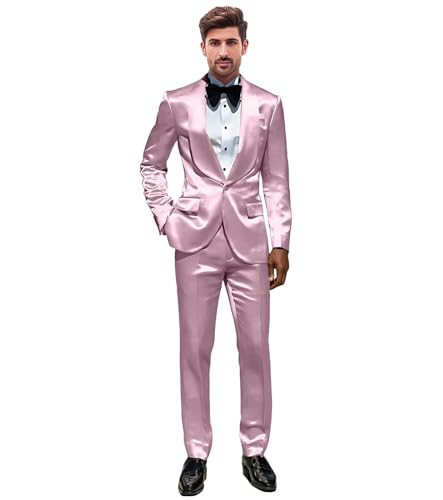 Mens 2 Piece Satin Suit One Button Slim Fit Formal Wedding Prom Party Tuxedo Suits Blazer Pants Set 2