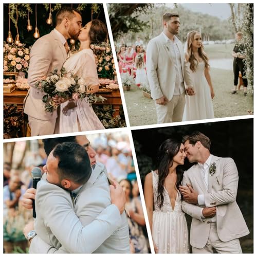 • Design: 2 Piece Linen Men Suits,one buttons on the front; Pockets: Multiple pockets free up your hands, with two Straight pocket at the waist; The back of the coat has double slits, providing high comfort and easy movement, suitable for various body types slim fit suit more tight than a regular suit