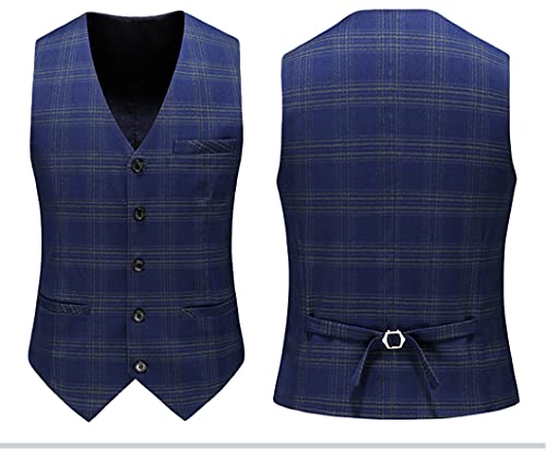 Men Plaid 3 Piece Suit Blazer Vest Pants British Style Slim Double Breasted Set 5