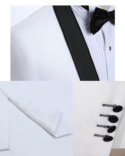 • Style:Black and white tuxedo mens 2 piece,elegant and classic,2 jetted pockets and shawl lapel ,looking sleek and classy,with adjustable back strap brings you a perfect fit,gentleman classic outfits.