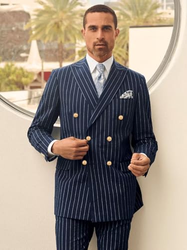 More information about Pinstripe Suit for Men Slim Fit 2 Piece Double Breasted Suits Gold Button Jacket Pants Business Wedding Prom
