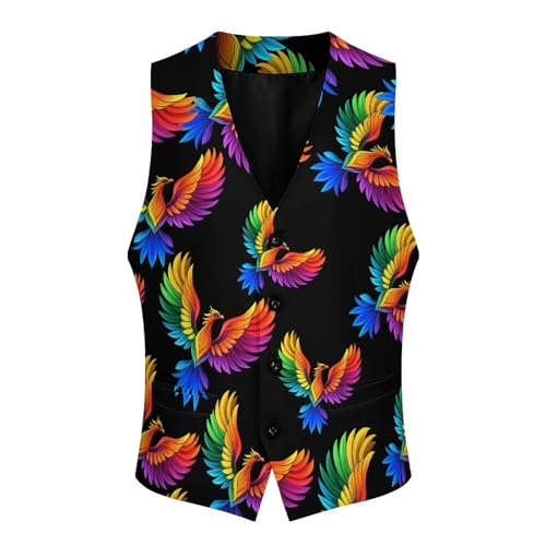 Phoenixes-Bird Men's Suit Vest Slim Fit Business Dress Party Pattern Waistcoat Vest Top 1