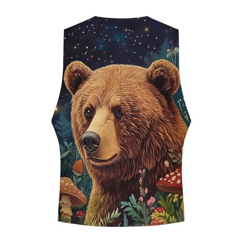 Bear Mushroom Starry Sky Men's Suit Vests Business Formal Dress Vest V-Neck Waistcoat for Wedding Casual 1