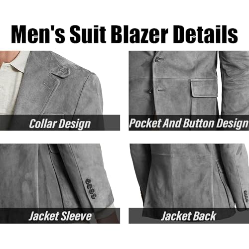 • 【Suits Jacket】:Using artificial suede fabric,this men's coat contains 2 button closure,Notch Lapel with 3 pockets