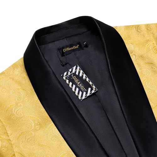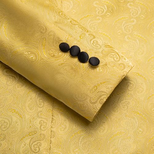 • 【Trendy Design】This yellow blazer is features with two side pocket,one button,shawl lapel,regular fit and 4 decorative cufflinks. The exquisite and timeless paisley and floral pattern design looks like a visual feast,making you an elegant prince in the crowd