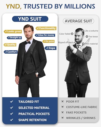 • Experience Top-notch Quality and Craftsmanship: YND suits embody quality and craftsmanship. We prioritize superior materials and meticulous attention to detail. Our fabric, handpicked for durability and breathability, outperforms average materials by 30%. Additionally, we've enhanced comfort by enlarging shoulder pads and chest linings. Each suit undergoes over 300 meticulous steps to ensure it mirrors the top-notch quality depicted in our pictures, focusing on even the minutest details.