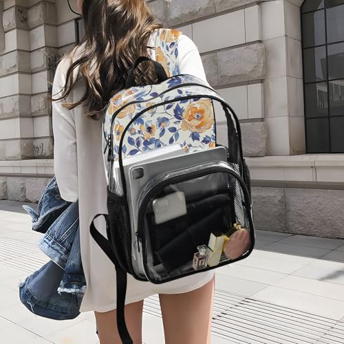 More information about Orange White Floral Clear Backpack, Heavy Duty PVC Transparent Backpack, Multiple Pockets See Through Backpacks for Work, College, Travel