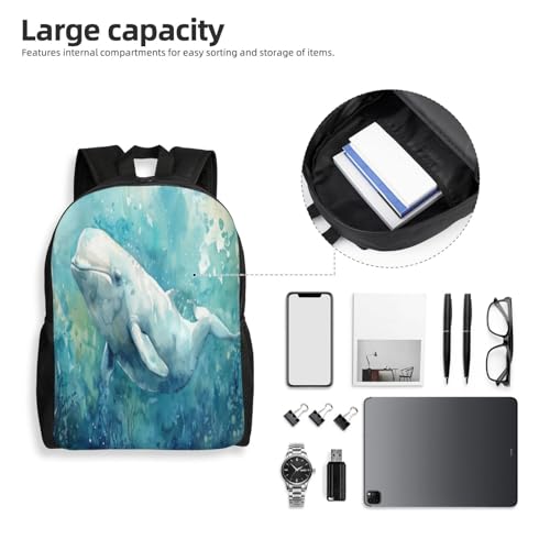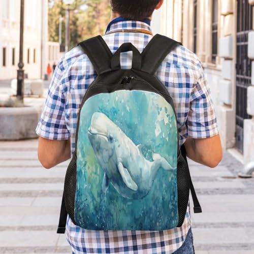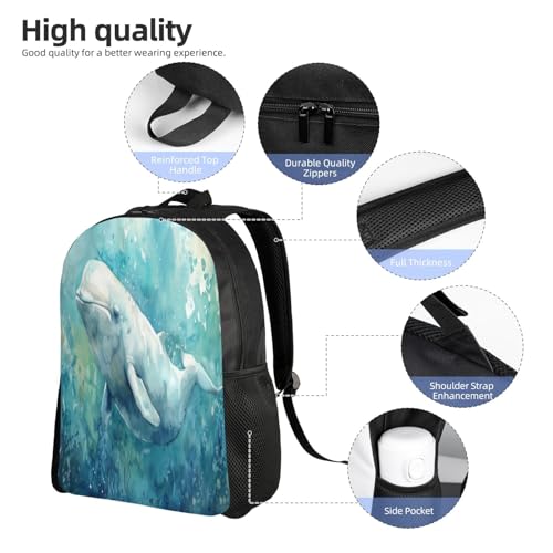 HOT ! Waterproof Backpack Beluga Whale Ocean Life 16Inch Unisex Backpack Gym Casual Daypack for Women Men Gift