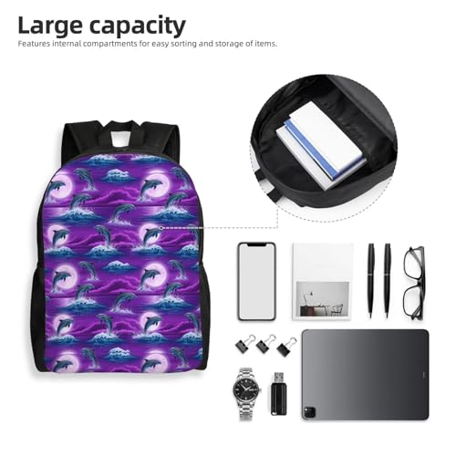 HOT ! Durable Multipurpose Rucksack Backpack for Men and Women, Perfect for Hiking, Running, Camping (Moon Dolphins Under Purple Moonlight)