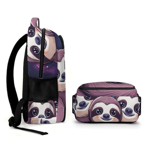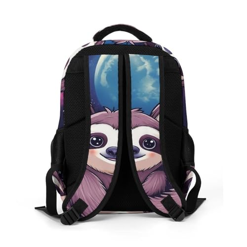 Unisex Backpack with Side Pockets, Women Men Durable Spacious Backpack, Full Moon Space Sloth Family Comfy Shoulder Bag for Travel, Daily Commuting 7