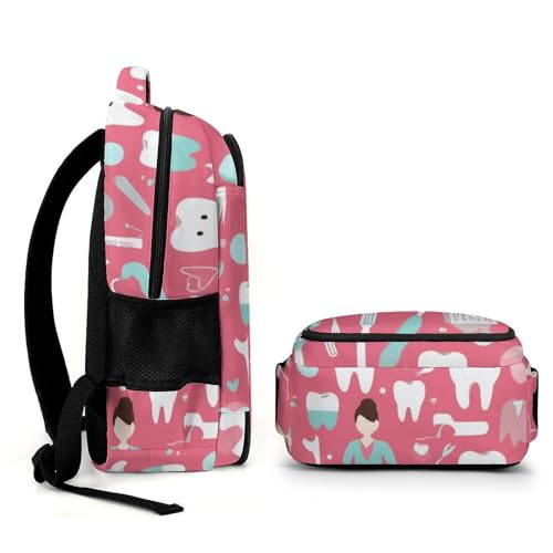 Casual Backpack for Unisex Adult, Novelty Teeth Dental Seamless Pattern Pink Large Capacity Backpack for Daily Use, Portable Shoulder Bag for Women Men 7