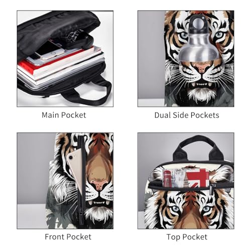 HOT ! Casual Backpack for Women Men Black and White Doodle Tiger Lightweight Daypack Large Capacity Nurse Bag