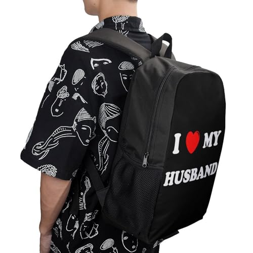 HOT ! I Love My Husband 17 Inch Backpack Classic Travel Daypack with Adjustable Shoulder Straps for Men Women