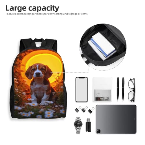 Comfort Fit Unisex Beagle Daisies Garden Light Backpack Durable for Daily Commute & Travel Adventures 16 Inch 1