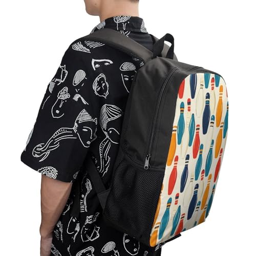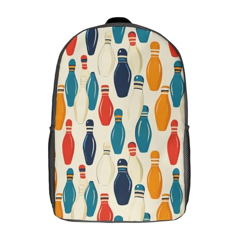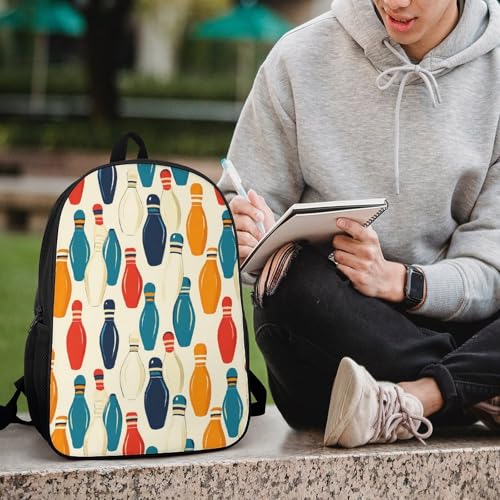 Colorful Bowling Pins 17 Inch Backpack Classic Travel Daypack with Adjustable Shoulder Straps for Men Women 4