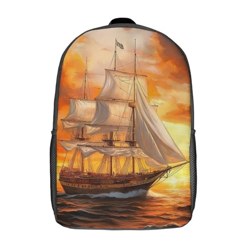 Sail Boat Sailing Ship 17 Inch Backpack Classic Travel Daypack with Adjustable Shoulder Straps for Men Women 4