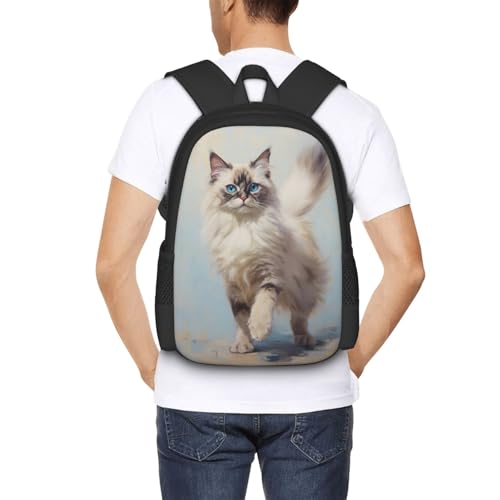 HOT ! Stylish Unisex 17 Inch Backpack Ragdoll Blue Eyes Pose Spacious Compartments for Work Essentials Casual Outings & Trips